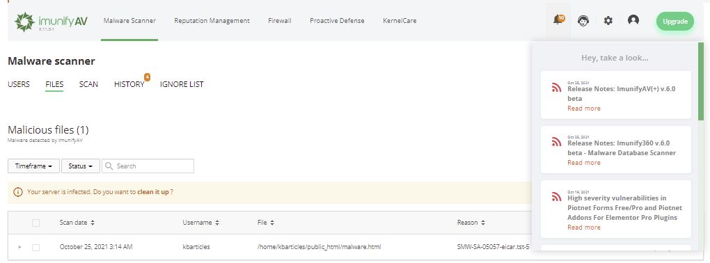 We’re here to help customers by proactively tracking down and identifying servers with malware, even if they are not using the complete Imunify360 security suite.
