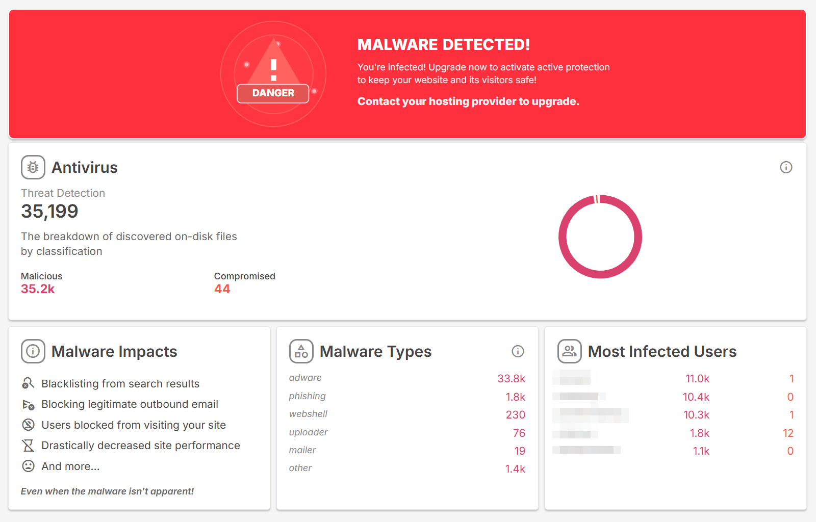 Monarx also provides greater insight into the individual threats facing your site.