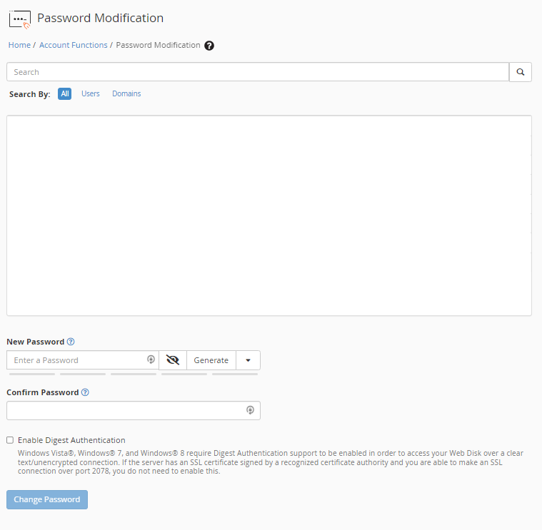 Select the account of the password you wish to change. Enter a new password or click the Generate button and then click Change Password.