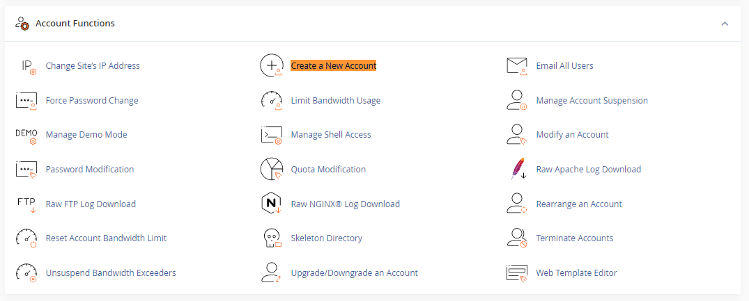 Once logged in, search for Account Functions on the left-hand side. Then click on Create a New Account.