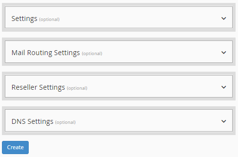 Scroll through the optional settings you wish to set up for this new account. Then click on Create.