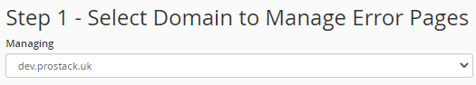 Firstly, if this account manages multiple domains, select the domain (from the drop-down) that you wish to edit to an error page.