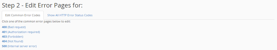 Click the error status code for which you wish to edit its error page.